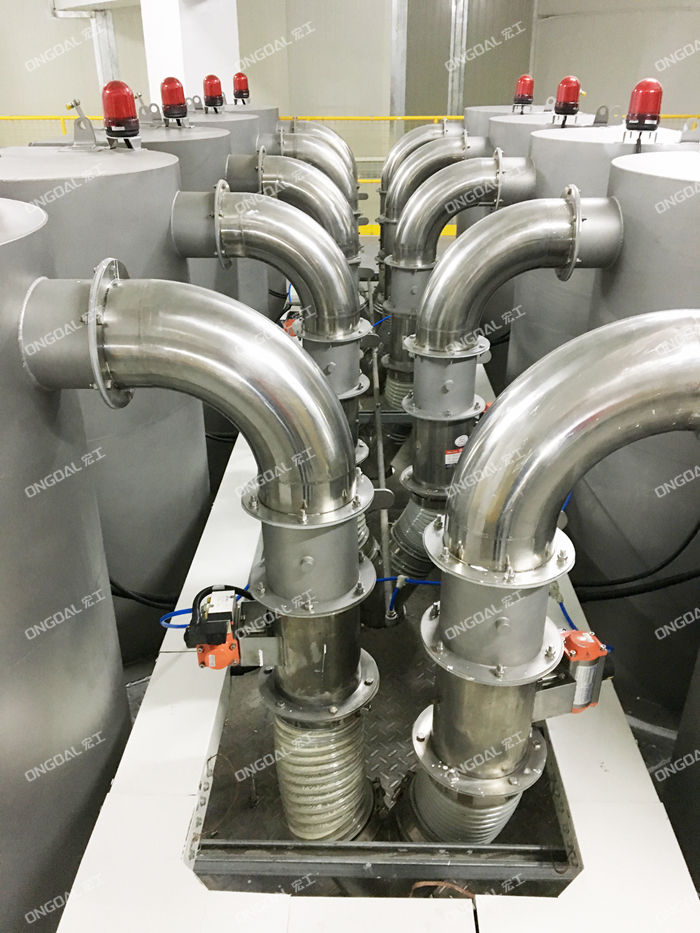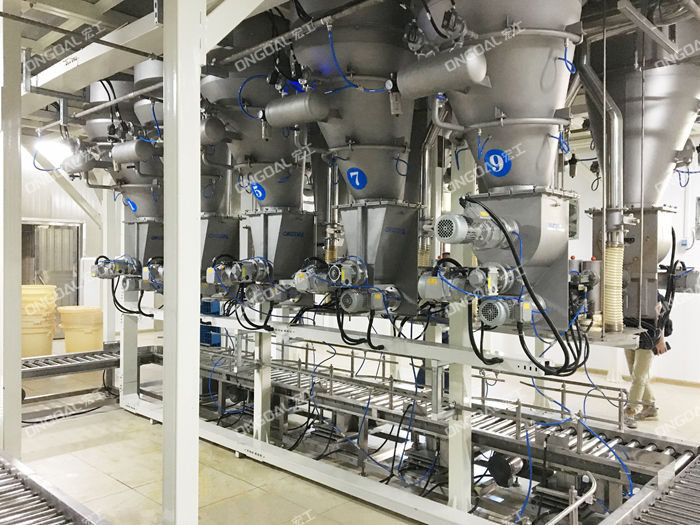 配料系統(tǒng)機組主要由多頭螺桿喂料機、破拱裝置、輸送線、投料倉、升降式計量稱、除塵裝置、鋼平臺、提升機、控制系統(tǒng)組成。