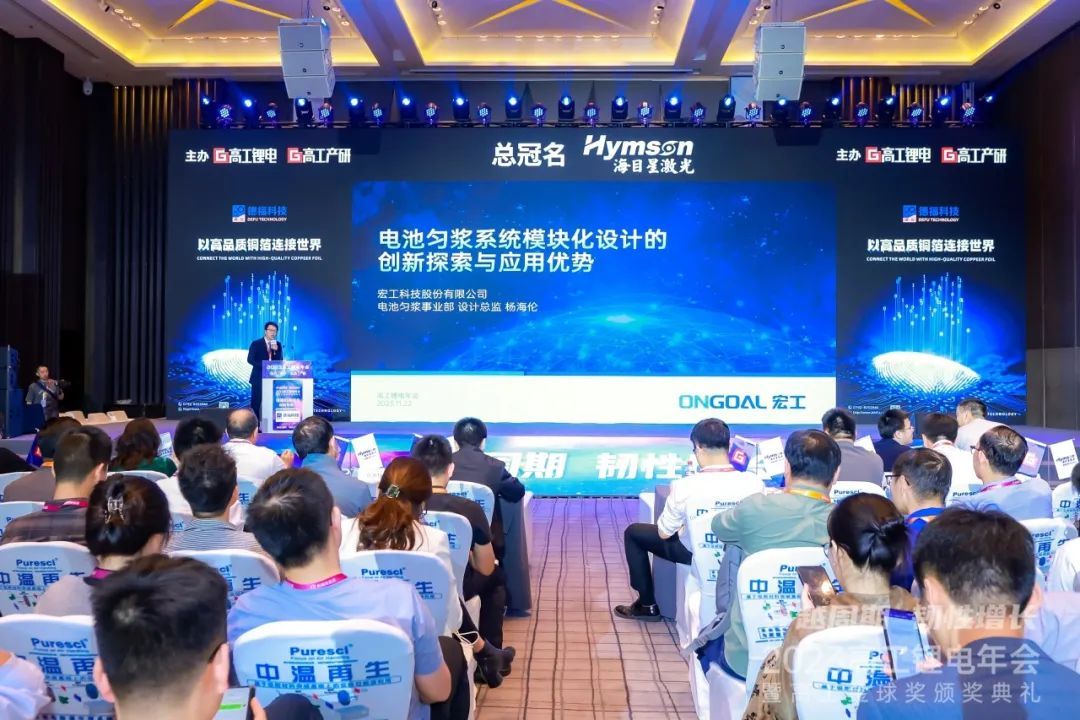 11月21-23日,以“穿越周期 韌性增長”為主題的2023高工鋰電年會盛大舉行。宏工科技電池勻漿事業(yè)部設(shè)計(jì)總監(jiān)楊海倫發(fā)表主題為“電池勻漿系統(tǒng)模塊化設(shè)計(jì)的創(chuàng)新探索與應(yīng)用優(yōu)勢”的演講,并收獲“2023年度投資價(jià)值企業(yè)獎(jiǎng)”。