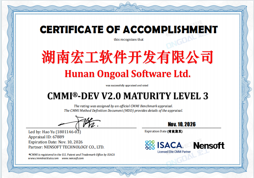 近日,宏工科技子公司湖南宏工軟件成功通過CMMI三級(jí)認(rèn)證并正式獲得資質(zhì)證書,斬獲全球軟件領(lǐng)域最權(quán)威的認(rèn)證之一,標(biāo)志著宏工在軟件技術(shù)開發(fā)、研發(fā)管理、項(xiàng)目管理等多方面獲得國(guó)際權(quán)威認(rèn)證。