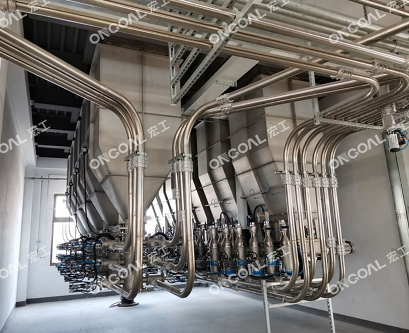 高精度計量配料系統(tǒng)突破傳統(tǒng)人工配比瓶頸,采用多級動態(tài)計量與冗余校驗技術(shù),通過閉環(huán)控制確保原料混合均勻性及批次穩(wěn)定性。集中供料輸送體系以封閉式氣力管道網(wǎng)絡(luò)為核心,結(jié)合智能分揀裝置,實現(xiàn)原料從倉儲到產(chǎn)線的全自動無塵化轉(zhuǎn)運,大幅降低人工介入與車間污染風(fēng)險。