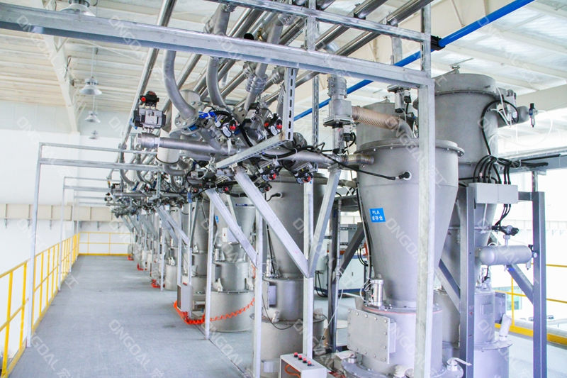潔凈化原料處理:主料投料采用負(fù)壓除塵技術(shù),實(shí)現(xiàn)PLA、淀粉等物料無塵拆包與密閉輸送,杜絕粉塵外溢;
