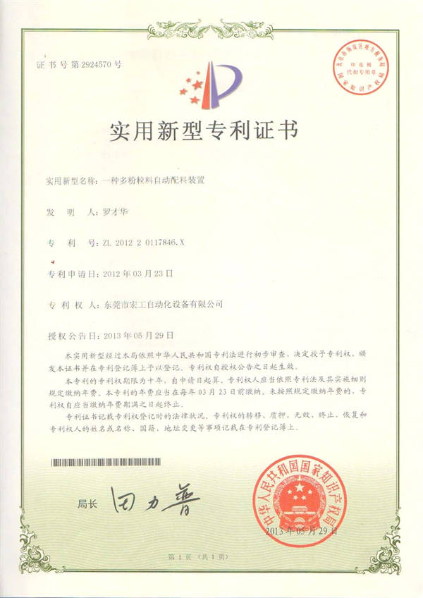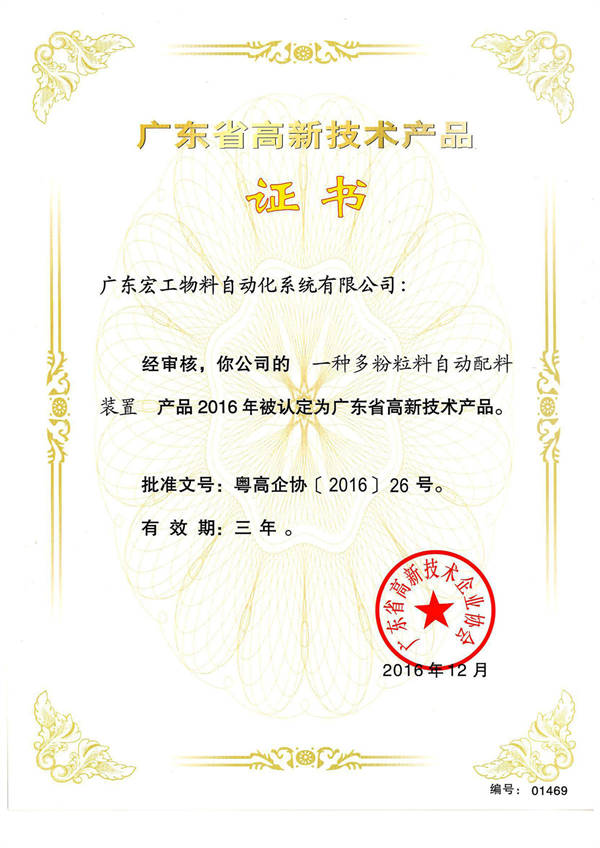 高新技術(shù)產(chǎn)品認(rèn)定-一種多粉粒料自動配料裝置