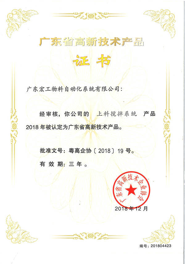 高新技術(shù)產(chǎn)品認(rèn)定-上料攪拌系統(tǒng)