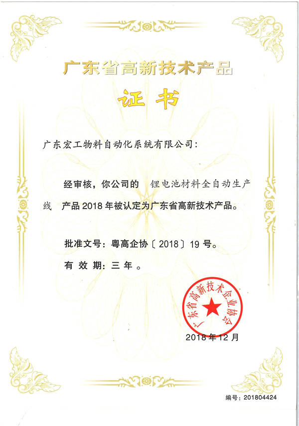 高新技術(shù)產(chǎn)品認(rèn)定-鋰電池材料全自動生產(chǎn)線