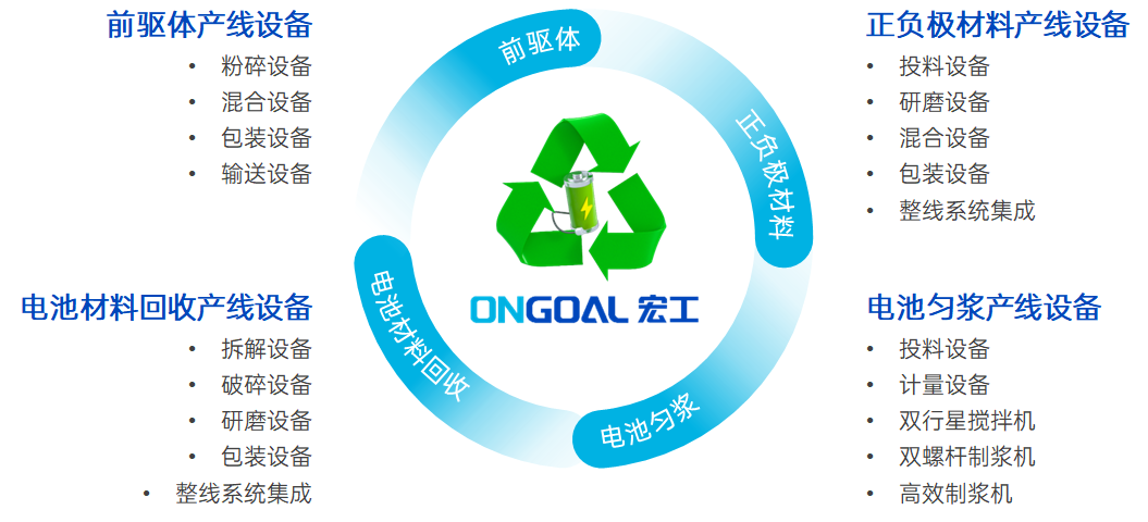 隨著電池回收市場(chǎng)的持續(xù)增長(zhǎng),自動(dòng)化設(shè)備與解決方案在提高產(chǎn)能和效率方面的重要性日益明顯。作為電池產(chǎn)業(yè)鏈上的一員,宏工科技不斷進(jìn)行全面深度的布局,從電池勻漿、正負(fù)極材料,到動(dòng)力電池回收,賦能綠色、清潔、可持續(xù)經(jīng)濟(jì)發(fā)展。
