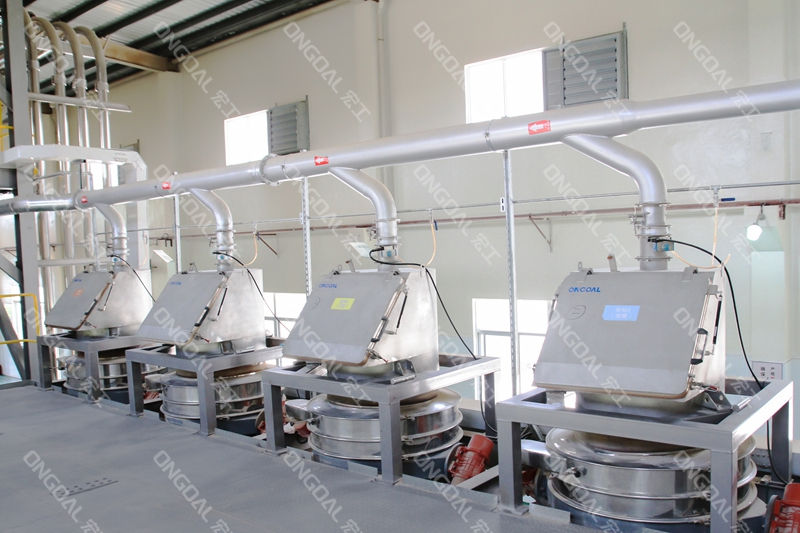 ????直排篩分級剔除結(jié)塊顆粒,堆垛式AMR自動轉(zhuǎn)運成品,減少人工接觸污染。 ?