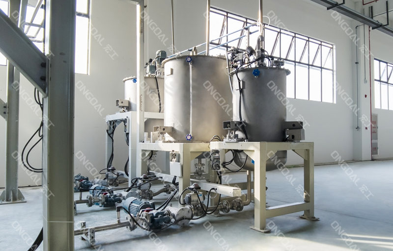在投料環(huán)節(jié),針對不同物料特性設(shè)計差異化處理方案:通過負壓長距離輸送系統(tǒng)有效解決氫氧化鋁高溫物料的輸送安全,利用風冷技術(shù)將物料溫度降至工藝要求范圍;氧化鋅與白炭黑采用配備單點除塵裝置的小袋解包站,徹底消除人工投料時的粉塵逸散問題,其中白炭黑更采用隔膜泵輸送技術(shù)突破輕質(zhì)粉體易漂浮的輸送瓶頸。
