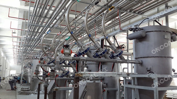1. 將新的原材料裝入生產(chǎn)設備。金屬粉末的密度很高,增加了粉末氣力輸送的難度。由于金屬粉末比重較高,通常使用叉車將粉末容器升高鏈接到進料斗的入口并在重力作用下出料,粉末的氣力輸送需在惰性氣體中進行,以防止金屬粉末的氧化。