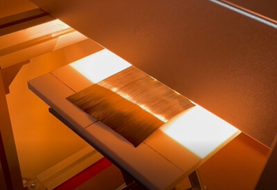 固化PP料無塵裁切可利用聚焦加熱器對(duì)半固化PP材料進(jìn)行加熱,結(jié)合圓刀切割技術(shù)實(shí)現(xiàn)無塵裁切。其主要原理是將紅外加熱技術(shù)與傳統(tǒng)的裁切方法相結(jié)合,利用紅外聚焦高溫加熱,穿透力強(qiáng),加熱速度快,對(duì)切割處的半固化片先加熱再裁切,從而減少切割過程中產(chǎn)生的粉塵,解決一直以來困擾業(yè)界的裁切半固化片粉塵及毛邊問題,提高生產(chǎn)效率的同時(shí)保證了操作人員的健康。